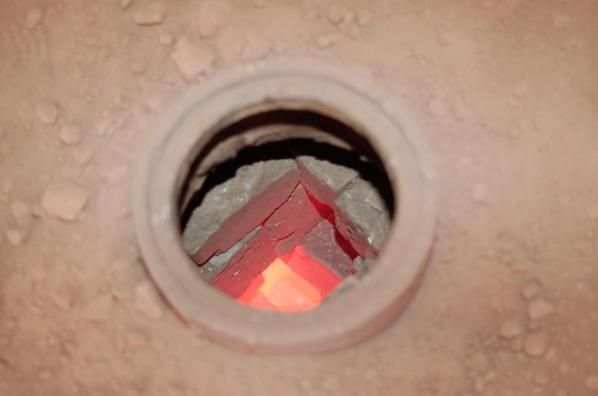 The kiln is made up of a number of chambers approximately 6 metres wide, insulated within a semi-permanent temporary covering created using unfired bricks and sand. The Worcester Brick kiln is housed in an open sided, roofed structure that insulates and protects from the weather.