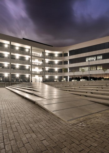 Aimed at increasing the tertiary educational opportunities within the City of Tshwane, the Learning Hub was developed on an old sports’ ground owned by the Nuwe Hoop School. The site is positioned between the man-made suburban area and a natural river system with the building reconnecting these divided areas. The 23 012m² development includes administration blocks, a canteen area, external piazza seating area, lecture rooms and a library. It is modern and dynamic in design, suited to the lifestyle of students and educational staff.