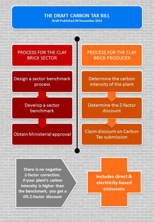 The proposed South African Carbon tax includes a component under which an taxable entity car reduce its taxable GHG volume if it can demonstrate its operations are less carbon intensive then is the case for the sector of sub-sector. This sector carbon intensity (also referred to as the Carbon Tax benchmark or Z-factor) is expressed in tCO2e/unit of product and requires approval of the minister of the department of Environmental affairs. At this moment in time the CBA on behalf its members is in the process of determining the process according to which the sector could determine the carbon intensity benchmark with government.